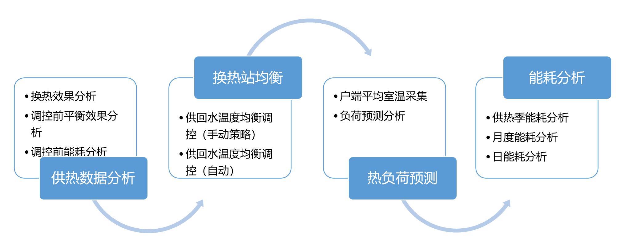 · 負荷預測以熱網平衡為前提,戶端室溫均衡舒適為目標,結合天氣變化的算法模型。
