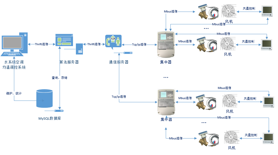 該系統(tǒng)是一款以水系統(tǒng)空調(diào)系統(tǒng)項目中的智能監(jiān)測調(diào)控系統(tǒng),監(jiān)控空調(diào)運行參數(shù)為手段,以空調(diào)節(jié)能運行管理為目的的Web化系統(tǒng),通過在線監(jiān)測空調(diào)運轉(zhuǎn)模式、供回水溫度、室內(nèi)溫度、設(shè)定溫度、電量等運能參數(shù),并進行周期采集,進而對數(shù)據(jù)進行統(tǒng)計、分析,考慮到供暖、制冷過程中房屋日照朝向及風(fēng)盤遠近程度主要因素,在此基礎(chǔ)上建立一套相應(yīng)的空調(diào)節(jié)能管理模型,通過配以集中控制、水力平衡、預(yù)先調(diào)控、分時控制、分區(qū)控制等全方位調(diào)控手段,最終達到在線空調(diào)的節(jié)能運行管理,通過調(diào)控實現(xiàn)建筑空調(diào)用電節(jié)能10%~15%以上。