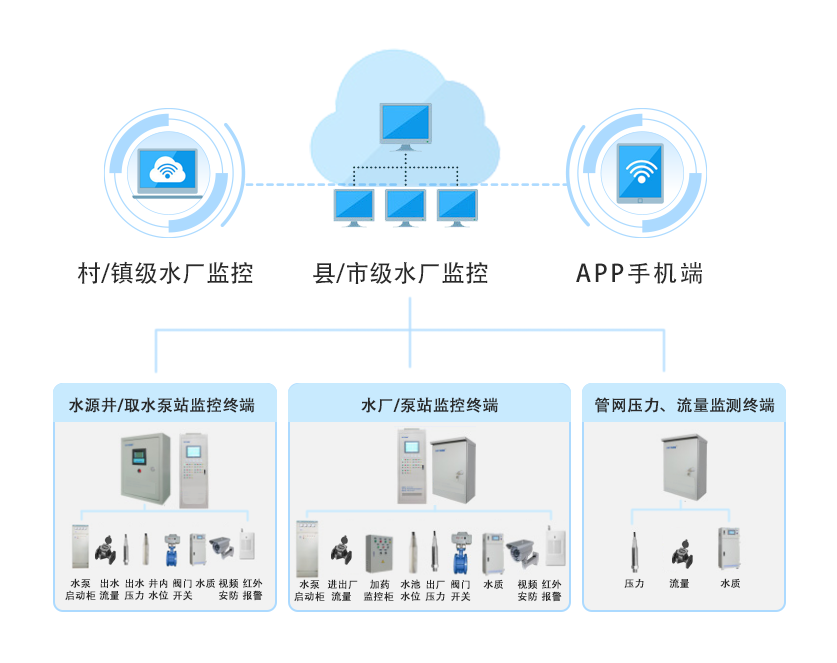 系統(tǒng)可全面提升城鄉(xiāng)飲水安全服務(wù)和管理水平,實(shí)現(xiàn)工程標(biāo)準(zhǔn)化建設(shè)、全方位監(jiān)管、科學(xué)化決策,生產(chǎn)自動化控制、信息化管理、精準(zhǔn)化運(yùn)行。