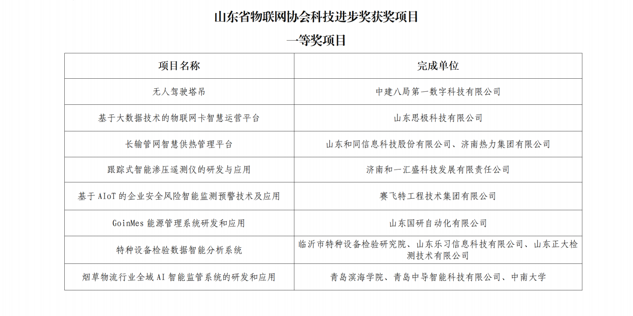 喜報(bào)!和同信息榮獲山東省物聯(lián)網(wǎng)協(xié)會(huì)科技進(jìn)步獎(jiǎng)一等獎(jiǎng)!